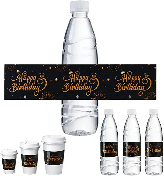 20 Pieces Black and Gold Happy Birthday Party Water Bottle Labels Birthday Waterproof Water Bottle Wrapper Labels Personalized